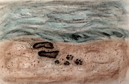 Indented in the sand.