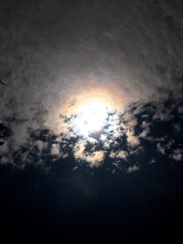 Earth’s moon tangles a sun.